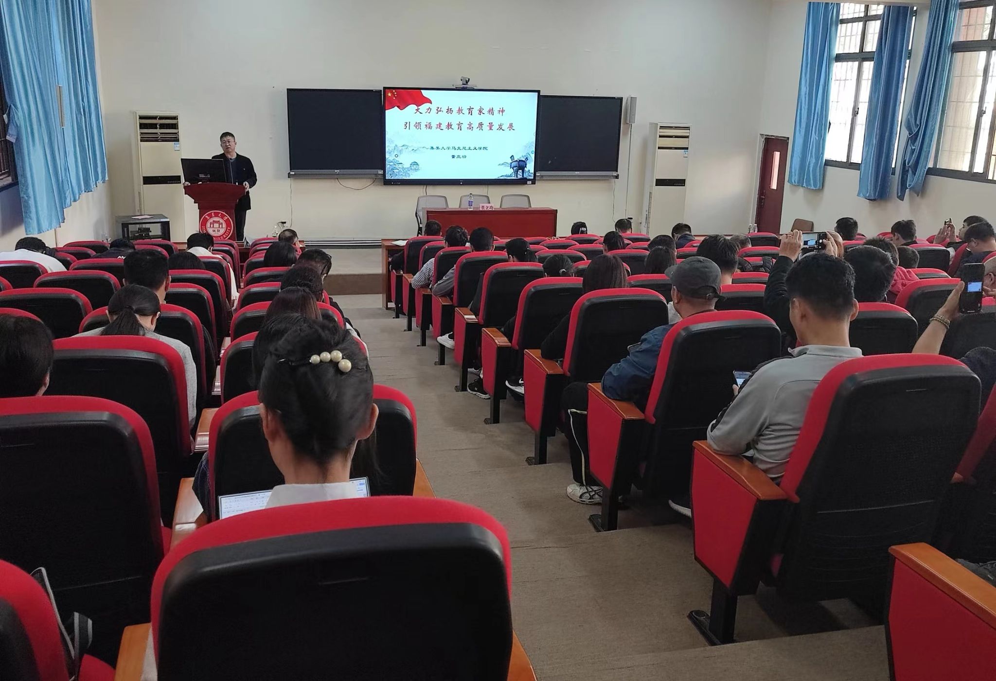 董立功以《大力弘扬教育家精神 引领福建教育高质量发展》为题,以习近平总书记在2024年全国教育大会上的金句为切入点,围绕中国教育在国际上的地位、福建省教育在国内的地位、福建没有理由不把教育办好、以教育家精神引领福建教育高质量发展四个方面展开阐述,结合国情校情深入诠释了教育家精神的核心要义,强调要深刻把握“六个力”为教育强国建设贡献高校力量。讲座既有理论深度又有情怀温度,引经据典又结合实际,为广大青年教师和教育工作者成长提供了价值引领和精神鼓舞,与会人员受益匪浅。